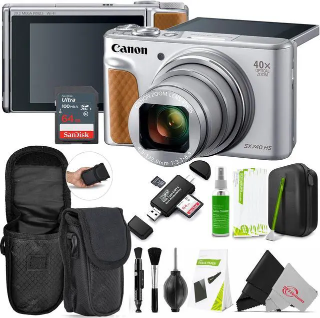 Few things will be too far away for the silver PowerShot SX740 HS Digital Camera from Canon. Boasting a 20.3MP CMOS sensor and 40x optical zoom, this all-in-one point-and-shoot can capture things near and far. Helping the far end of its 24-960mm zoom range (35mm equivalent) is optical image stabilization which keeps your photos sharp and in focus. Zoom Framing Assistant makes it easier to track subjects at the long end of the focal length by quickly zooming out and then back in at the press of a button once you've located your subject. Canon's DIGIC 8 Image Processor helps the camera keep up with your shooting, allowing for 10-fps continuous shooting with AF lock on.