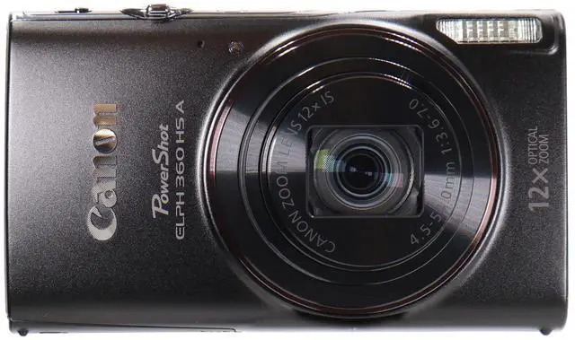 Note: Image processing may cause a decrease in the number of pixels. DIGIC 4+ Image ProcessorThe Canon DIGIC 4+ Image Processor is the brain behind the PowerShot ELPH 360 HS camera's features, like Hybrid Auto, Creative Shot, and full HD video recording. It's fast and responsive, making it fun and easy to shoot. The processor also improves image quality which means less noise, so you'll get bright colors, smooth transitions, and clear details even in low light. And guess what? It also has electronic Dynamic IS, which helps prevent blur caused by different types of movement, so you'll get sharp and clear images. 12x Optical Zoom Capture every moment, near or far, with the PowerShot ELPH 360 HS A. Its 12x Optical Zoom gives you a versatile range of 25-300mm (35mm equivalent), all packed into a sleek, compact design that fits right in your pocket. From wide-open landscapes and bustling city scenes to group selfies at family reunions, the wide-angle lens makes sure nothing (and no one) gets left out. Want to zoom in for a candid or a far-off detail? Just flip the switch and go.