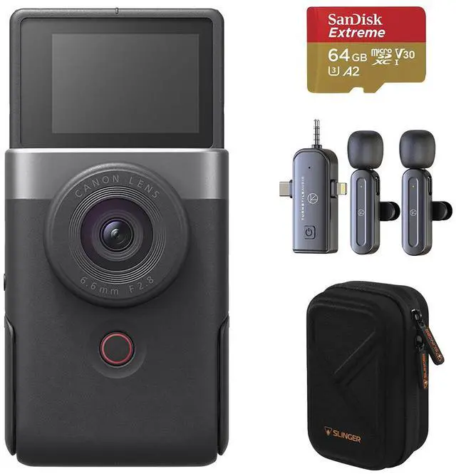 The PowerShot V10 is a vlog and still camera in a new highly portable form factor with components from the popular G-Series line that lets you create impressive videos on-the-go. With stereo sound capture, a built-in stand, and easy live streaming, this cam is ready to go when you are. Don't let its size fool you, this is a vlogging studio in a compact package that can be operated with one hand to let you express your story!