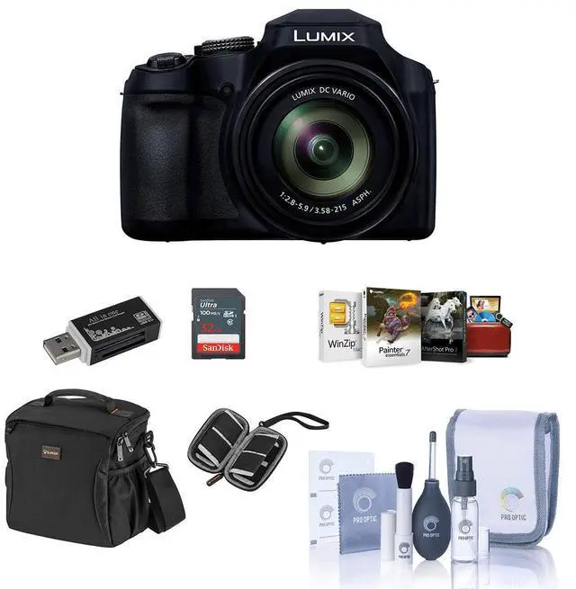 Additionally, the camera comes with a 55mm filter thread, allowing for the convenient addition of filters and close-up adapters. This bundle also includes a 16GB SDHC Card, a camera bag, a cleaning kit, a memory wallet, a card reader, and a Mac software package, providing you with all the essentials to start your photography journey. Experience the power and versatility of the Lumix DC-FZ80 Digital Point & Shoot Camera, and elevate your photography to new heights.