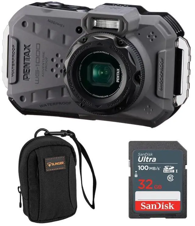Discover the Pentax WG-1000 All-Weather Camera, your ultimate companion for outdoor adventures and challenging environments. This robust camera combines exceptional waterproof, dustproof, and shockproof capabilities in a compact, lightweight design, making it ideal for a wide range of activities, from casual outdoor photography to underwater exploration. Engineered for extreme conditions, the WG-1000 is waterproof up to a depth of 15 meters for an hour of continuous operation, ensuring you capture stunning underwater images without worry. Its dustproof construction protects against dirt and stains, while its shockproof design can withstand drops from heights of up to two meters, making it perfect for rugged terrains and work sites.