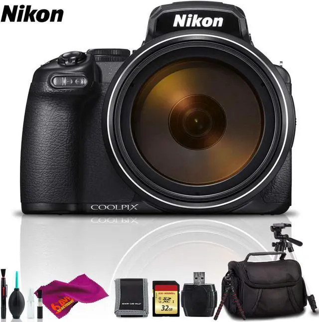 Shoot at staggering distances with the 125x optical zoom COOLPIX P1000 Digital Camera from Nikon. This camera, which has a 16MP backside illuminated CMOS sensor, features a built-in NIKKOR lens with a 35mm equivalent focal length range of 24-3000mm. You can zoom even further with 250x Dynamic Fine digital zoom, which will give you an equivalent focal length of 6000mm. Coupled with these extreme focal lengths is Nikon's Dual Detect Optical Vibration Reduction, which provides 5 stops of optical image stabilization and ensures your telephoto shots are crisp.