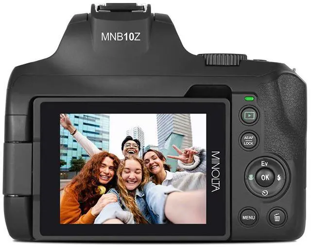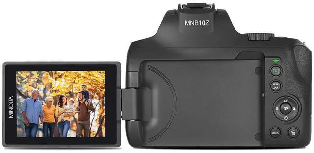 The Minolta MNB10Z is a powerful camera with a 10x optical zoom and 4K Ultra HD video capabilities. It features a lens with auto focus and a focal length range of 29.4 mm to 294.00 mm, with an aperture range of F/ 2.8 to F/ 3.1. The camera has electronic shutter and digital image stabilization for steady shots. It can record 4K UHD video at 24 FPS and capture photos with a resolution of 64 mega pixels. The camera has a 3.0 -inch articulating IPS LCD monitor for easy viewing. It offers various special features such as a mode dial, color filters, 10 scene modes, burst/continuous photo shooting, time-lapse, face detection, and ISO 3200.
