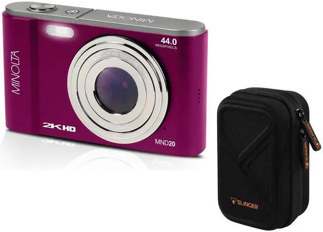 Its compatibility with a range of Minolta lenses and support for various memory card types, including SDHC UHS-I, SDHC UHS-II, SDXC UHS-I, and SDXC UHS-II, makes it a versatile asset for photographers who demand quality and flexibility. Whether you're a seasoned professional or a passionate enthusiast, the Minolta MND20 44 MP 2.7K Ultra HD Digital Camera is designed to inspire and empower your photographic journey. To complete the package, this camera comes with a Slinger Camera case, providing a secure and convenient way to transport your camera and accessories.