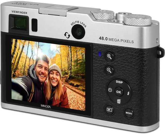 The MND70 also features an optical viewfinder for precise framing, ensuring you capture the perfect shot every time. Additionally, the extra selfie lens is designed for capturing creative selfies with ease, eliminating awkward angles and enhancing your self-portraits. Embrace the retro-inspired design of the Minolta MND70 and make it your go-to companion for capturing unforgettable memories. Transform every scene into a masterpiece with this versatile and stylish digital camera.