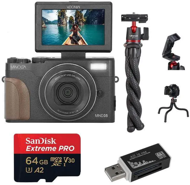 The MND35 is a robust digital camera with high-end features packed into a point-and-shoot package. Capture life's moments like never before with 64-Megapixels and breathtaking 4K Ultra HD. Its compact size and convenient 18x digital zoom make it perfect for any adventure. The 3.0" articulating IPS monitor and creative features like Time Lapse, Photo Burst, Macro Shooting, and Auto Focus with Digital Image Stabilization turn every scene into a masterpiece. 64-Megapixel still Image Resolution with Digital Image Stabilization Preserve the moment with stunning high-resolution 64 megapixel photos suitable for cropping or enlarging.