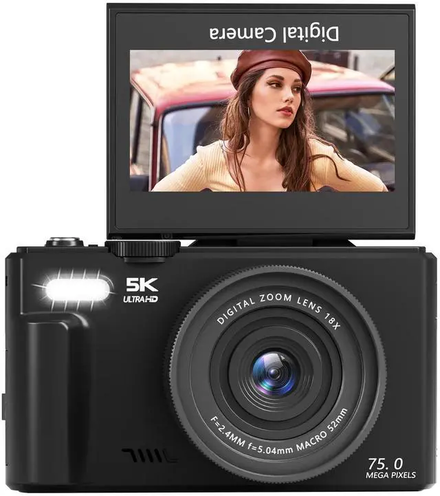 Flexible Viewing: Equipped with a 3-inch 180-degree flip screen for easy selfies and vlogging, plus 18x digital zoom and a high-brightness flash.