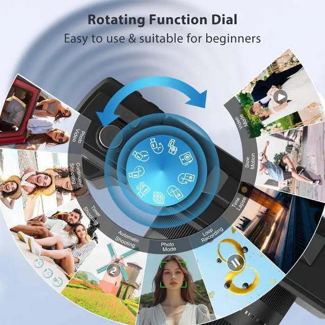 Versatile Modes: Offers four photo modes (continuous, timed, auto, normal) and four video modes (time-lapse, loop, slow motion, normal) with various filters.