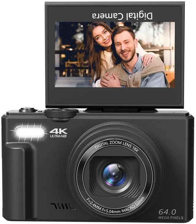 Versatile Display: Features a 3-inch 180-degree flip IPS screen for easy selfies and vlogging, complemented by 18x digital zoom for flexible framing.