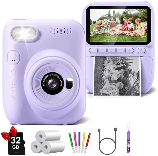 Capture memories instantly with this kids instant print camera featuring a 3.0-inch HD screen and a powerful 32MP camera. Designed for young photographers, it allows children to take photos and print them instantly without ink. Easy to use and fun to explore, this camera makes a perfect Christmas or birthday gift for kids ages 3 to 12.