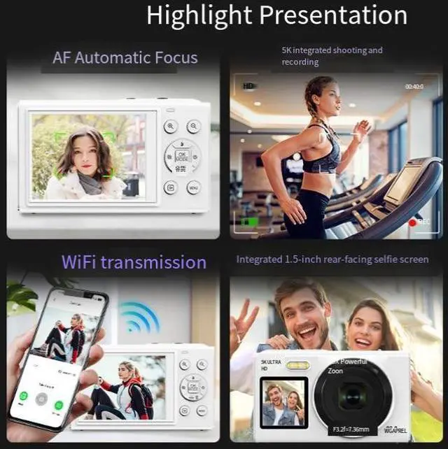 Capture perfect selfies and stunning videos with this 5K Dual-Screen Selfie Camera. Featuring front + rear screens, 80MP photos, and WiFi transfer, it's ideal for vloggers, students, and portable photography.