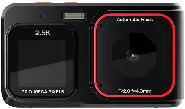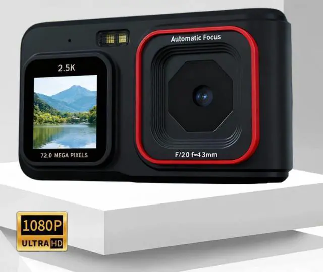 Capture stunning 72MP photos and QHD video with this Dual-Screen Digital Camera. Featuring 2.4" + 1.54" displays, autofocus, and MP3 playback, it's perfect for home, travel, and students.