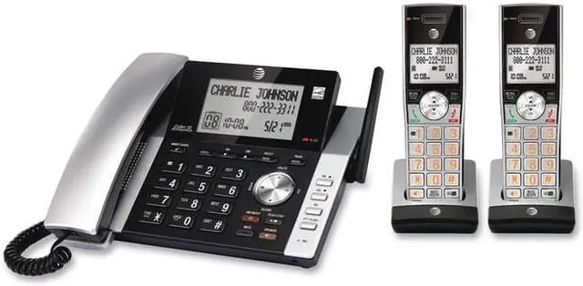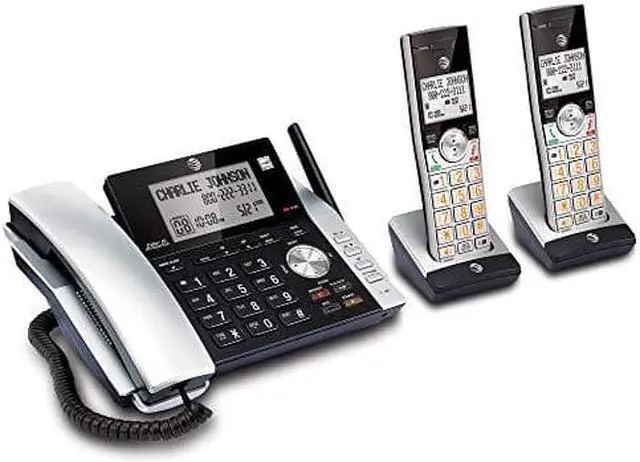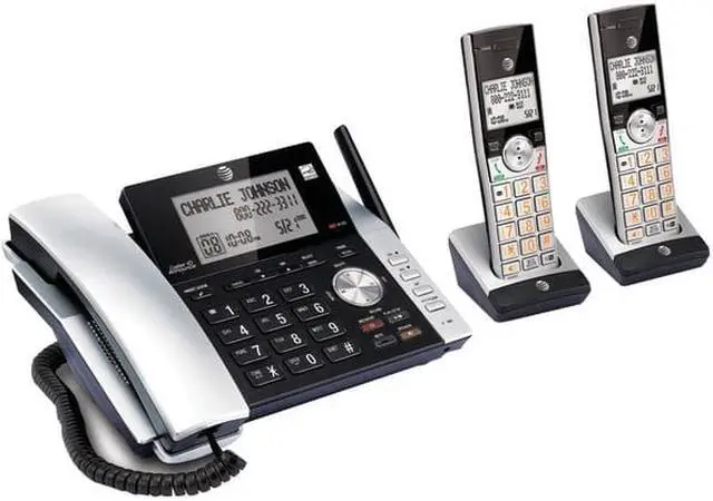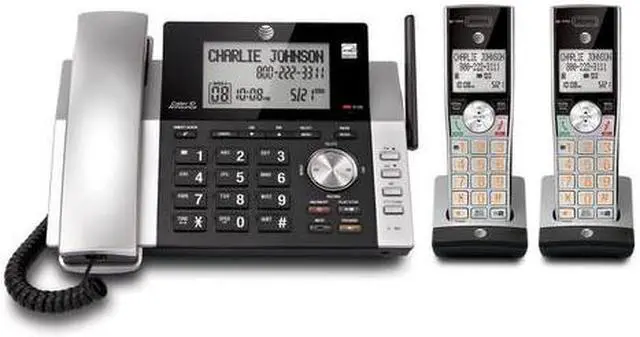 Corded/cordless answering system provides the mobility of a cordless handset and the confidence of always knowing the location of your corded handset. A unique antenna design and advanced noise-filtering technology let you experience exceptional long-range coverage and clarity. Both the handset and base announce the name of the caller so you dont have to scramble for the handset to see whos calling. Versatile system doubles as a multiple-handset walkie-talkie to instantly communicate with up to four units at once. HD audio features an easy-to-use equalizer to personalize bass, treble and natural tones for your individual hearing needs. Digital answering machine records up to 22 minutes of incoming messages, outgoing announcements and memos. Answering system also features a backlit base display, big buttons, power-conserving technology, quiet mode, call block, DECT 6.0 digital technology and more.