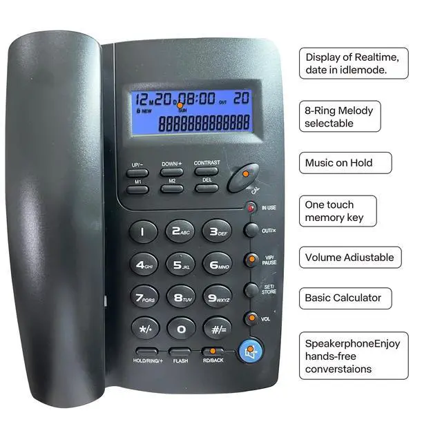 Ocean blue back lit LCD display, Caller ID, time and date display even in dim light condition