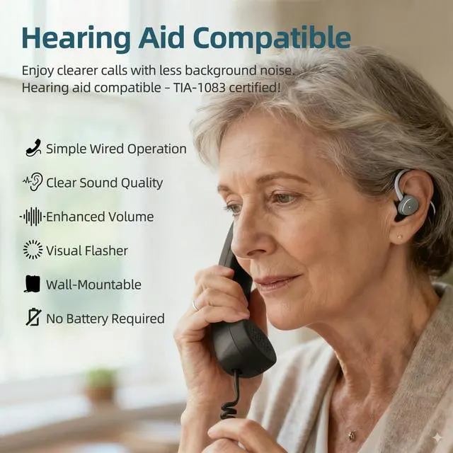 This hearing aid phone for seniors meets TIA-1083 hearing aid standards and works with most T-Coil hearing aids. It delivers clear, uninterrupted conversations, minimizing background noise, headset distortion, and echo for a reliable calling experience.