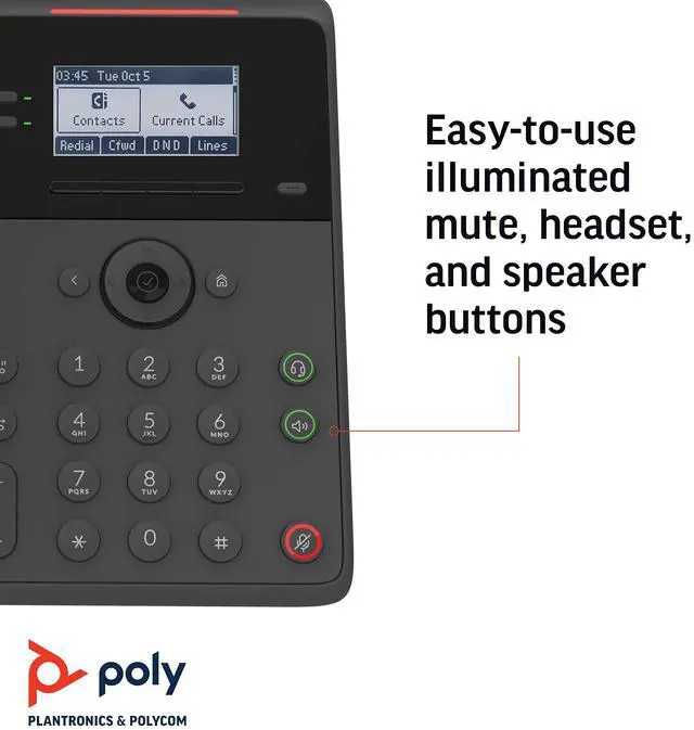 - Compatibility and Convenience: More productive calls with a hands-free speakerphone with proven acoustic echo cancellation and background noise suppression technology. More headset options with both RJ9 and 3.5 mm headset ports.