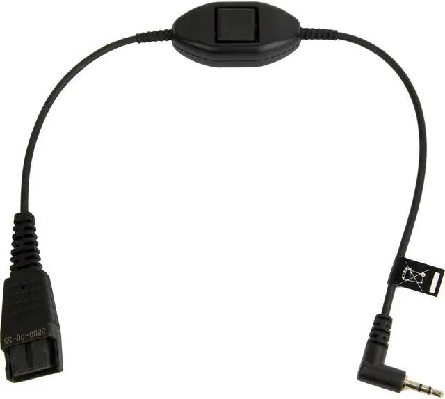 Cord with Push-To-Talk button to connect a Jabra Quick Disconnect headset to phones with a 2.5 mm jack interface. Please check the compatibility guide for which cord works with your specific phone.
