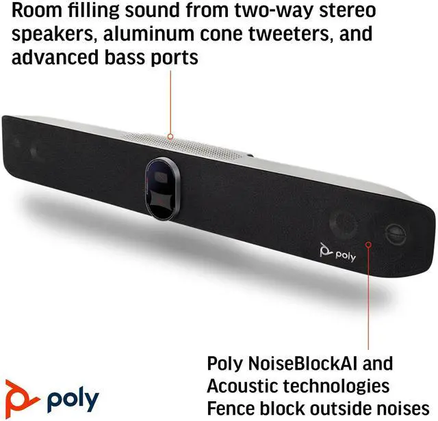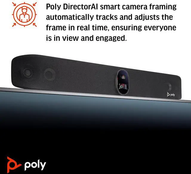 Keep your eye on the action with Poly DirectorAI intelligent camera framing and NoiseBlockAI technology - all powered by machine learning. Get advanced vocal pickup from our next gen microphones. Easily share content over wired or wireless connections.
