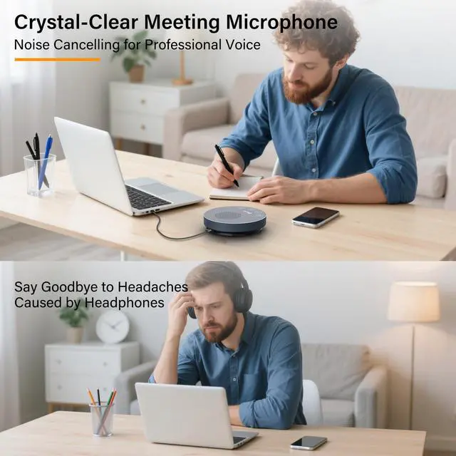 Crystal-Clear 360° Conference Audio : This professional conference speaker and microphone system delivers exceptional omnidirectional voice pickup,capturing natural sound within 6-12 inches and covering up to 6 feet for group meetings.As a complete computer speaker and microphone for desktop PC,it requires no additional software or sound card.Perfect for 4-6 person conferences,it produces professional-quality audio with stunning clarity.Compatible with Zoom,Teams,Skype,and more,this all-in-one speaker with microphone ensures seamless communication across all applications.