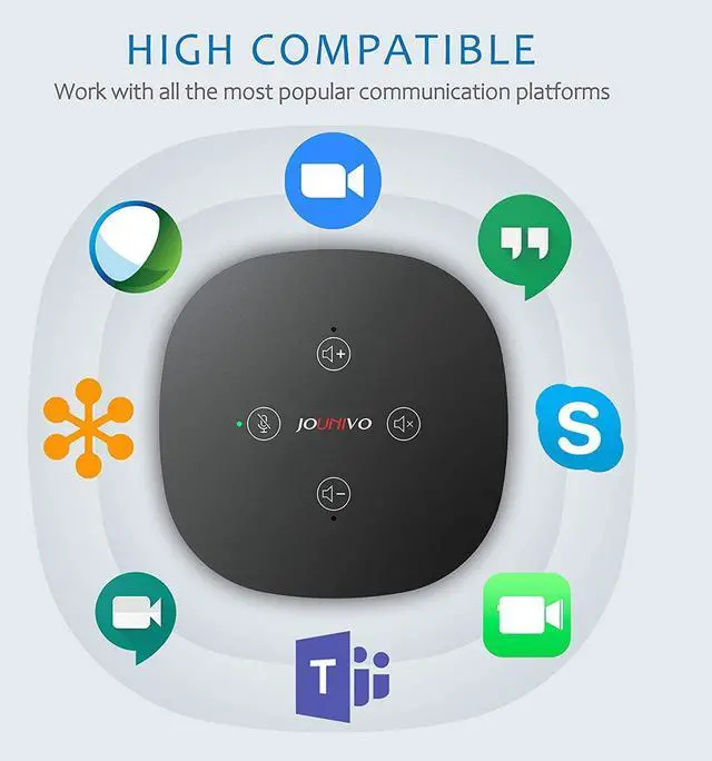 The conference speaker works seamlessly and smoothly with Skype, GoToMeeting, FaceTime, TEAMS, etc, NO DELAY. Suitable for office or working from home. Compatible with PCs, phones, tablets, iPods, etc, plug and play.