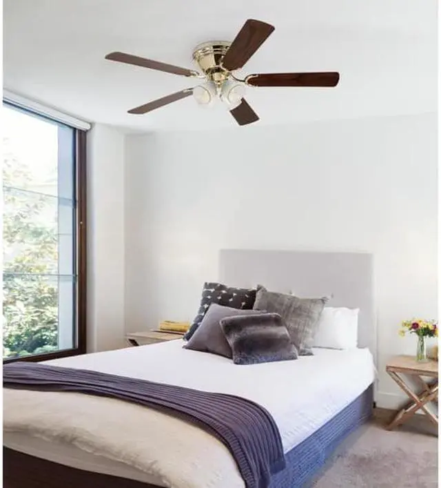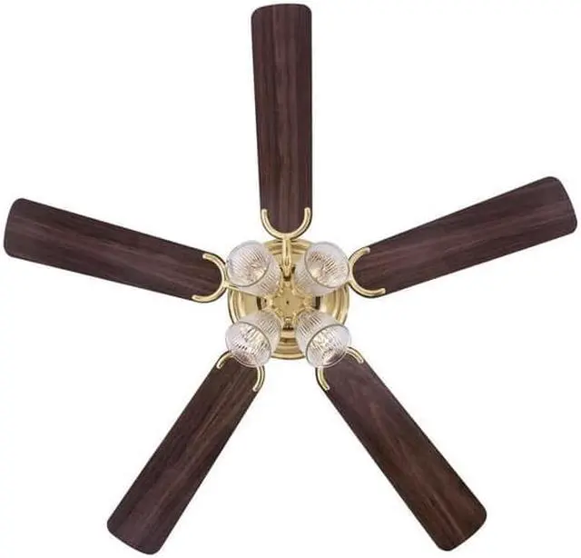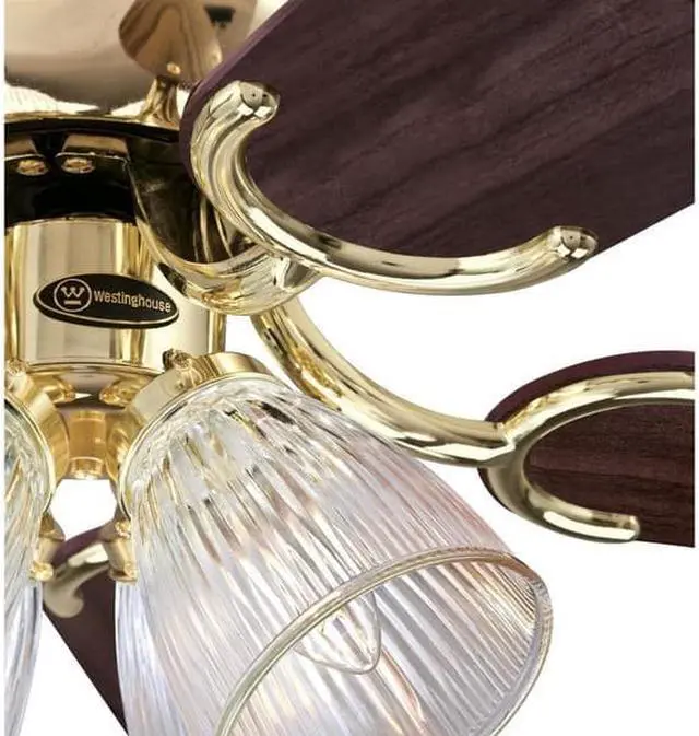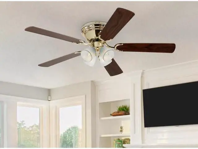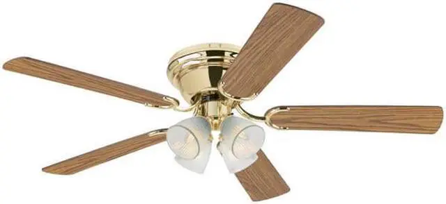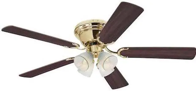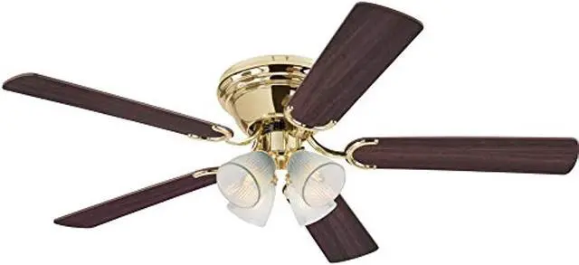 California Proposition 65: This product contains a chemical known to the State of California to cause cancer. California Proposition 65: This product contains a chemical known to the State of California to cause birth defects or other reproductive harm.The Westinghouse Contempra IV indoor 52 inch ceiling fan with light adds year-round comfort, illumination, and style to your home. The flush mount ceiling fan design is ideal for large rooms with low ceilings. The polished brass finish and coordinating reversible wood finish blades will enhance any room. Choose walnut or oak finish to complement your decor.