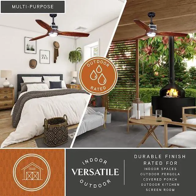 The hand carved solid wood blades and the clean lines of the motor housing give the Curtiss ceiling fan its industrial look. This fan is compatible with sloped ceilings and includes a 6 inch down rod (longer down rods sold separately). Exterior damp rated, ideal for interior and exterior spaces such as entryways, family rooms, or covered outdoor porches. Remote control included for Live convenience. An LED light kit (included) provides energy saving, low maintenance and long lasting performance.
