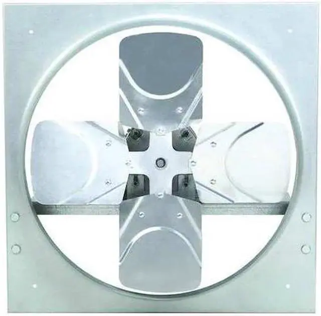 Exhaust/Supply Fan, Direct Drive Reversible, Blade Dia. 18 in, Exhaust/Supply CFM @ 0.000 -In. SP 3477/2960, Exhaust/Supply CFM @ 0.250 -In. SP 2926/2739, Drive Package With Motor Included No, Max. Ambient Temp. (F) 104 Degrees F, Fan Voltage 115/230V AC, Operating Amps 3.3 / 1.7, Fan RPM 1750/1750, Exhaust/Supply Fan Motor HP 1/3 hp, Bearing Type Ball, Motor Enclosure Totally Enclosed Air-Over, Height (In. ) 22 in, Width (In. ) 22 in, Max. Depth (In. ) 10 3/4 in, Frame Finish Galvanized.