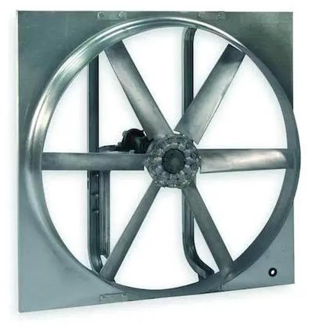 Exhaust/Supply Fan, Assembled Unassembled, Blade Diameter 48 in, Blade Material Aluminum, Frame Material Steel, For Maximum Motor Horsepower 5 hp, For Maximum Motor Speed 1, 007 RPM, For Minimum Motor Horsepower 3/4 hp, For Minimum Motor Speed 539 RPM, Maximum Airflow 35, 694 cfm, Maximum Static Pressure 0.75 in wg, Minimum Airflow 19, 105 cfm, For Cut-Out Height 50 1/2 in, For Cut-Out Width 50 1/2 in, For Cut-Out Diameter 50 1/2 in, Guard Type None, Method of Construction Cast, Number of Blades 6.