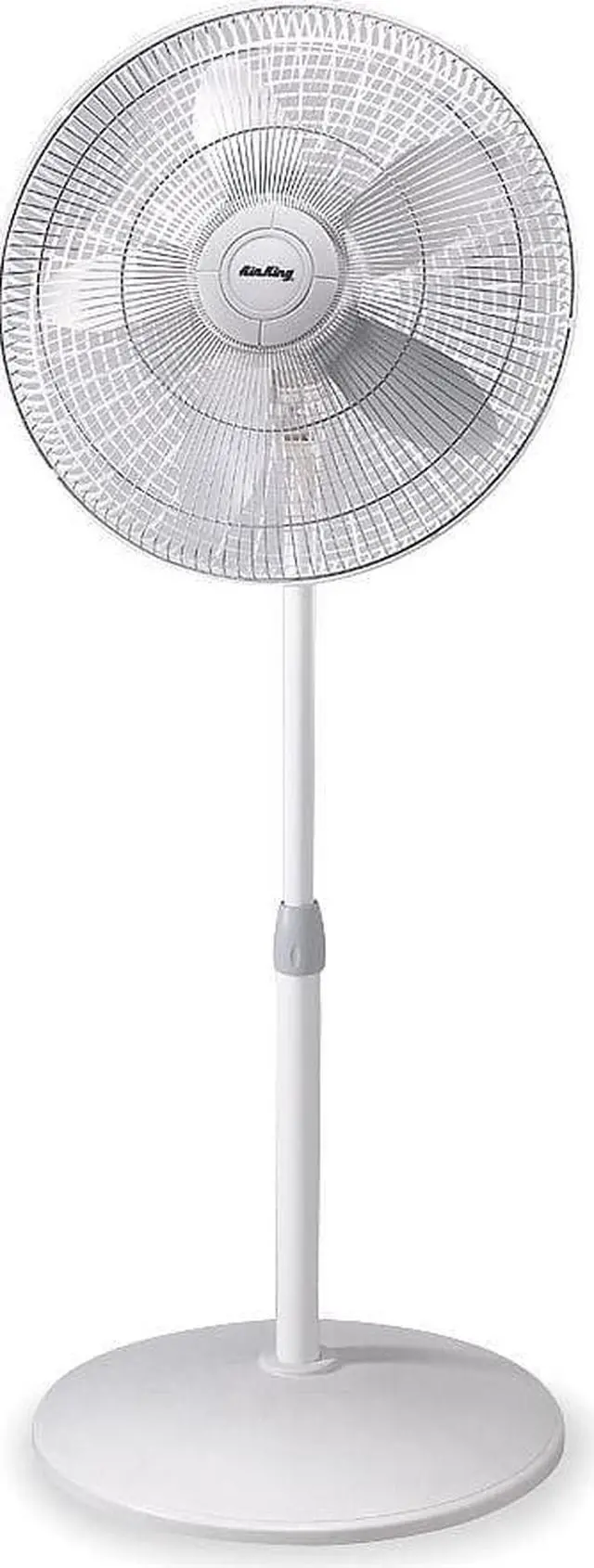California Proposition 65: This product contains a chemical known to the State of California to cause birth defects or other reproductive harm. Pedestal Fan, Overall Style - Fans Pedestal, Fan Mounting Location Pedestal, Number of Speeds 3, Blade Dia. 18 in, Oscillating, Air Flow (CFM) 1950/1680/1380, Fan Cord Length 6 ft, Fan Power Source Plug-In, 114/85/83 W Watts, 1100/950/800 RPM RPM, Number of Blades 5, Fan Voltage 120 V AC, Fan, Length 20-3/4 In., 0.85 / 0.67 / 0.59 A Amps, Height 54 1/2 in, Width 20 3/4 in, 60 Hz Hz, Bearing Type Sleeve, Blade Material Polypropylene, Powder Coated Steel Front with High Impact Resistant Plastic Rear. This item has been restricted from sale in the following state (s): []