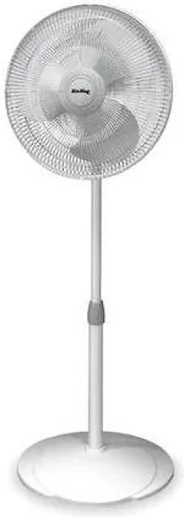 Pedestal Fan, Overall Style - Fans Pedestal, Fan Mounting Location Pedestal, Number of Speeds 3, Blade Dia. 16 in, Oscillating, Air Flow (CFM) 1580/1420/1220, Fan Cord Length 6 ft, Fan Power Source Plug-In, 77/65/57 Watts, 1450/1320/1050 RPM, Number of Blades 3, Fan Voltage 120 V AC, Fan, Length 18 In., 0.60 / 0.50 / 0.45 Amps, Height 53 1/4 in, Width 18 in, 60 Hz, Bearing Type Sleeve, Blade Material Polypropylene, Powder Coated Steel Front with High Impact Resistant Plastic Rear, 3, 5-15P.