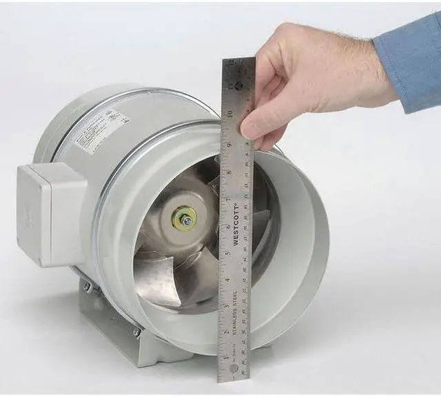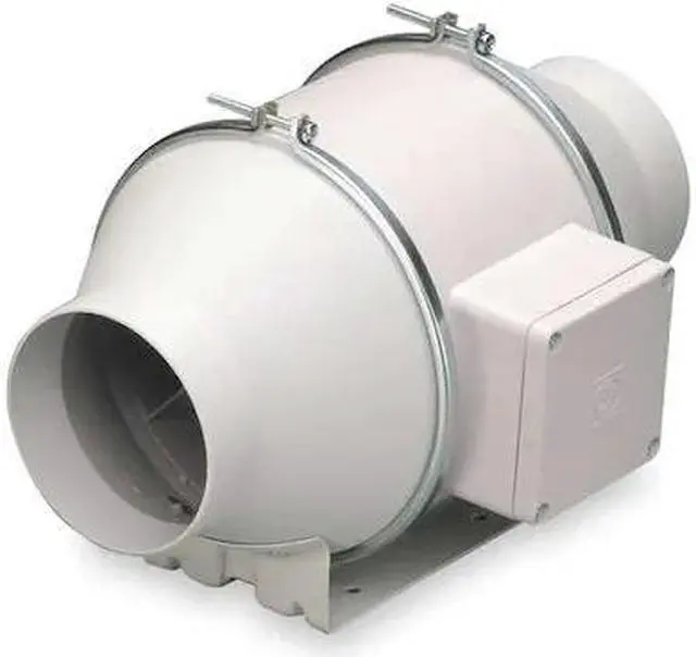 In-Line Duct Fan, For Fan Type In-Line Duct Fan, Airflow @ 0.000 in SP 538 cfm, Duct Diameter 8 in, Motor Output Power 184 W, Motor IP Rating IP44, Nameplate Voltage 120V AC, Phase 1, Number of Speeds 1, Overall Diameter 8 5/8 in, Overall Height 5 5/8 in, Overall Width 5 5/8 in, Application General Purpose, High-Efficiency Motor No, Housing Material Thermoplastic, Motor Speed 2, 800 RPM, Includes Mounting Bracket, Maximum Inlet Air Temperature 140 Degrees F, Speed Controllable Yes.