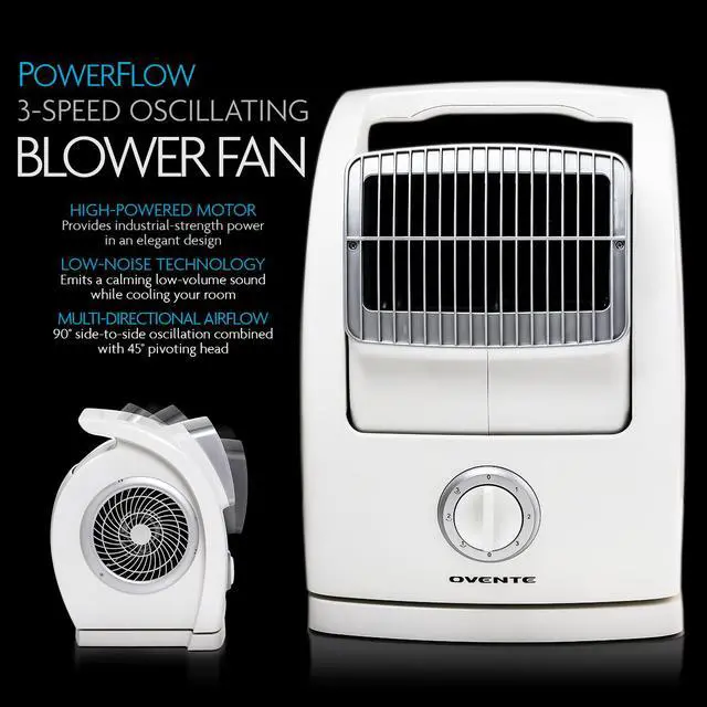 The Ovente Power Flow oscillating blower fan combines the cooling power of a traditional industrial-strength blower fan with an elegant oscillating design. The result is a great utility fan that can cool any room in your home, while staying remarkably quiet and conserving energy.