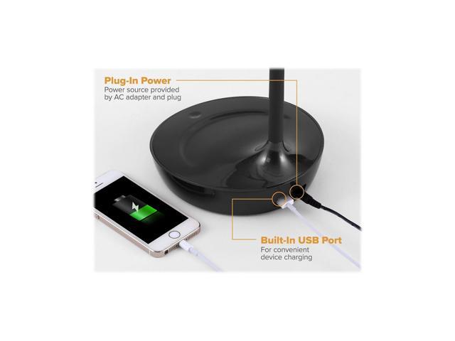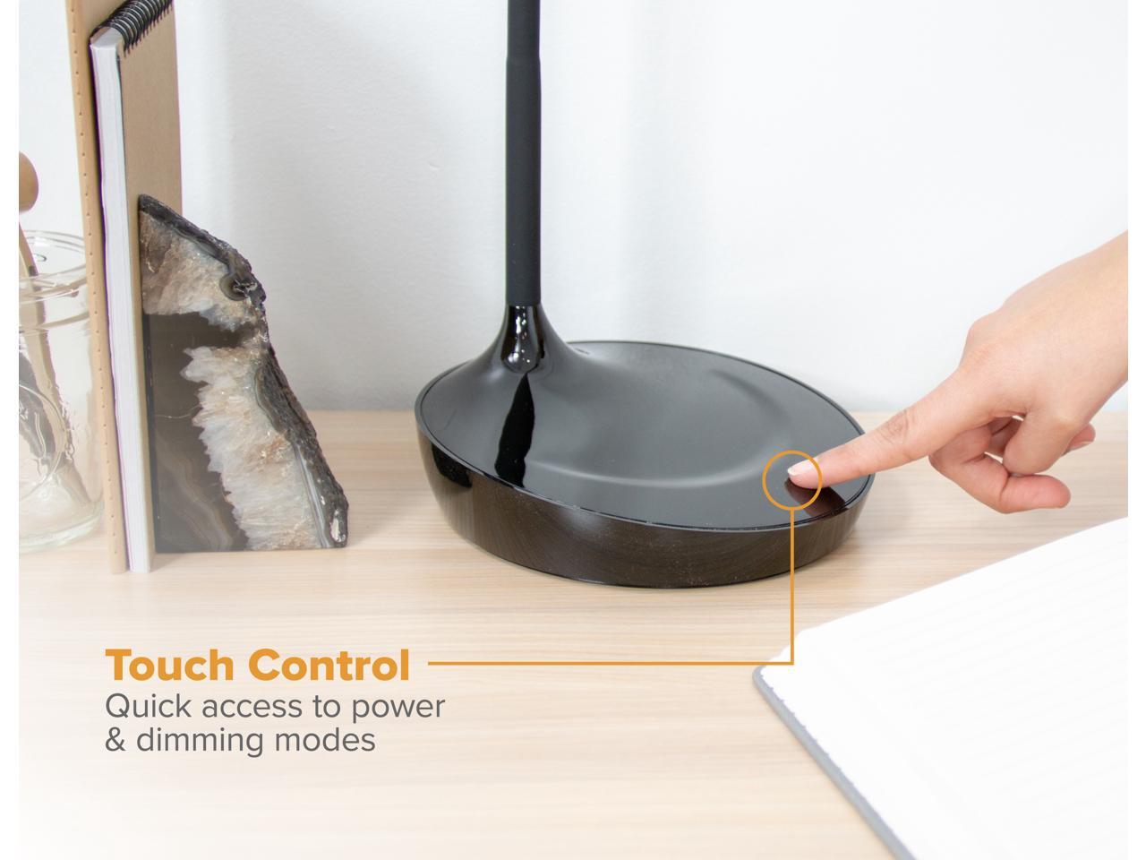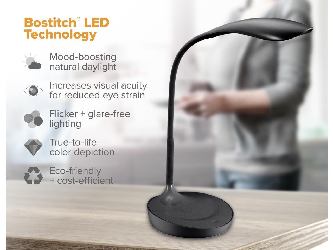 bostitch office ktvled1502blk gooseneck led desk lamp with usb charging port, dimmable, black
