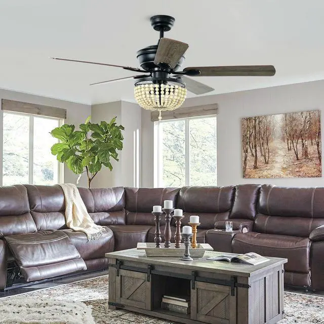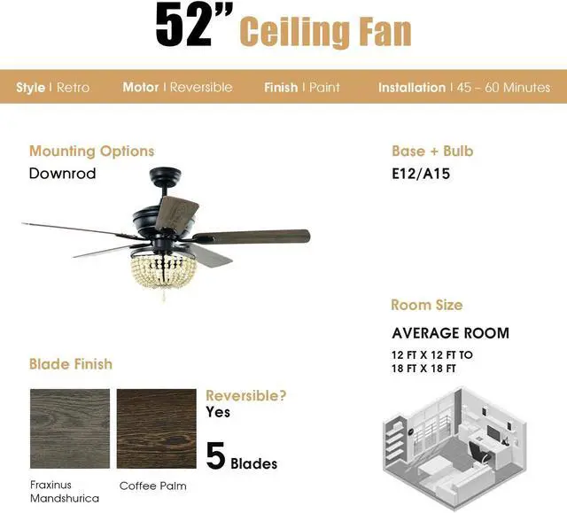 Retro Ceiling Fan: Featuring a beads lampshade and retro appearance, this beautiful ceiling fan makes a timeless addition to your home décor. Meanwhile, the blades have different finishes on each side which allows you to choose your favorite side while assembling it.
