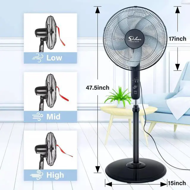 3 Adjustable Speeds: Different speeds make our pedestal fan ideal for different places. There are low, medium and high wind speed for you to choose according to different situations and temperature. Different wind speeds make our pedestal fan ideal for many places like office, home and so on.