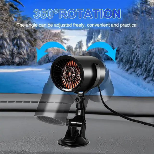 Quality Material: The windshield defroster is made of plastic material. High-temperature radiator, scientific electric heater radiator, half-minute quick heating, convenient heating. 360°rotation, the angle can be adjusted freely, convenient and practical. Equipped with a suction cup to keep the car heater fan stable while driving.