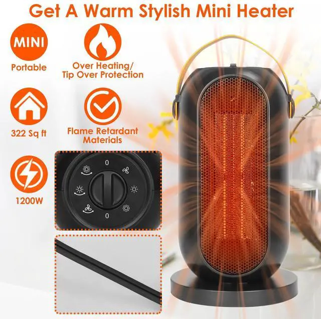 - *3S Fast Warming Up:Our ceramic heater can quickly warm up the air around you within 3 seconds!Stay warm and comfortable in nearly any space under 322Sq ft when the weather turns for the worst once you pick up this portable space heater!