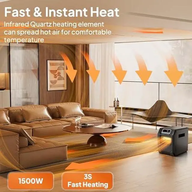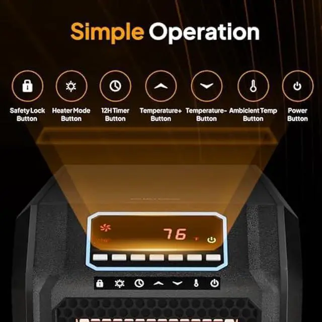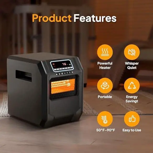 LED TEMPERATURE DISPLAY & REMOTE CONTROL The electric heater is equipped with a LED ambient temperature display, You can select a desired temperature degree ranging from 50~90°F / 10~32°C that makes you feel comfy, and the room heater will automatically circulate warm air to keep your space warm and cozy, and allows you to control the heater by remote control when youre watching TV on your sofa on a cold winter night
