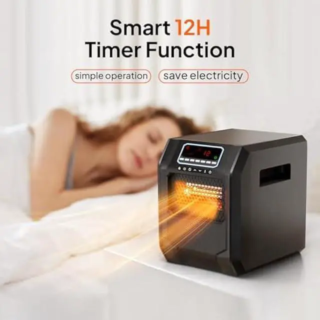 SMART 12-HOUR PROGRAMMABLE TIMER Our electric heater is equipped with a timer, which can be adjusted from 0 to 12 hours. The timer is not only for shutting off the room heater. It can also turn the space heater on at a time you have set. When you get back home after working all day, the room heater will give you a warm and thoughtful welcome.
