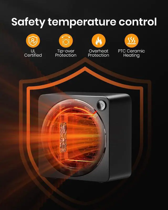 Safe and Reliable: Your safety is our top priority. Our small heater has built-in safety features, with 45° tip-over protection and overheating protection, V0 class fireproof material ensures safe use for a long time. You can rely on our heaters for a hassle-free heating experience