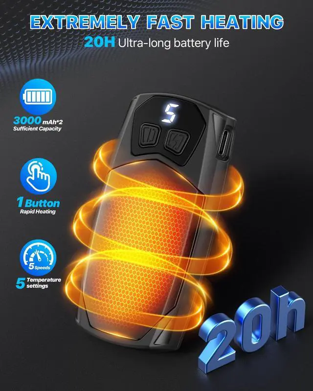 • Extended Battery Life: Powered by a high-capacity 6000mAh battery, hand warmer delivers up to 20 hours of consistent warmth on a full charge, ensuring all-day comfort. Whether you're at work outdoors, on a journey, or at a winter event, reliable warmth is always within reach.