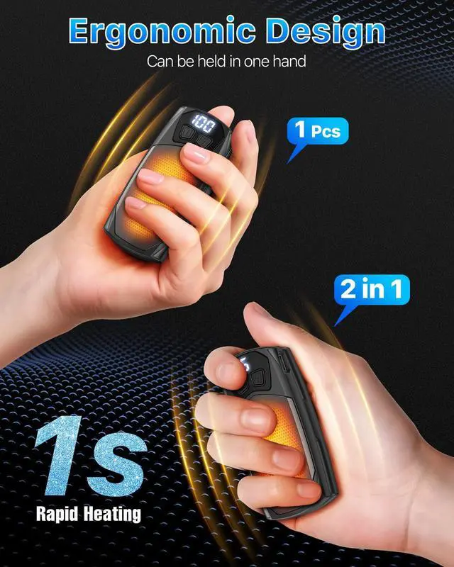 Stay warm anywhere, anytime with our 2-in-1 Rechargeable Hand Warmers. Each compact unit packs a 3000mAh battery, features5 customizable heat settings, and delivers instant warmth in just 1 second, reaching the perfect temperature of131°Ffor ultimate comfort.