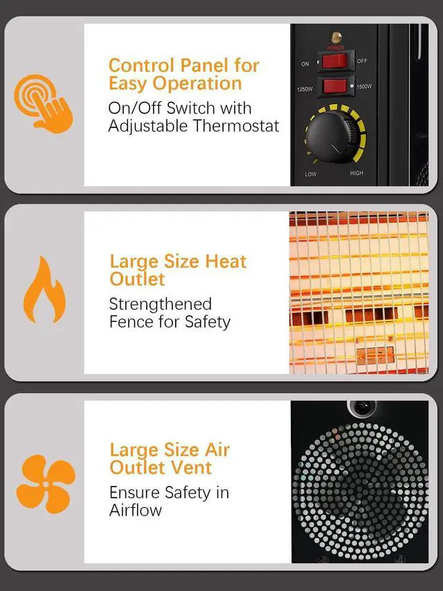 Instant warmth - enjoy the heat as soon as you turn on the heater