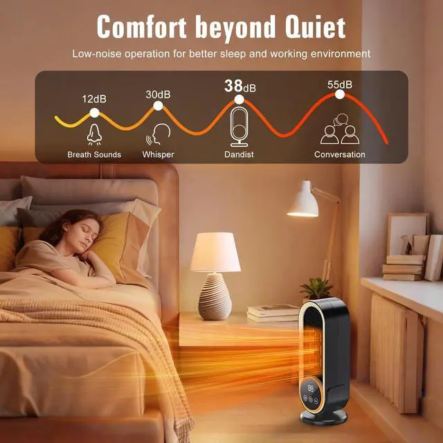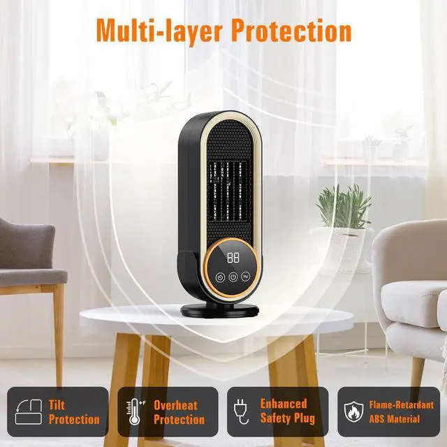 Comprehensive Safety ProtectionMade of flame-retardant ABS materials, garage heater offers safety features including overheat protection and tilt protection. Tilt protection is achieved via an automatic switch on the bottom, a practical and reliable design to ensure promptly power off if desk heater tilts over. Besides, the switch isn't over-sensitive, it will not be abnormally released and cause accidental power-off due to slight movement. It can even be used normally on carpeted floors.