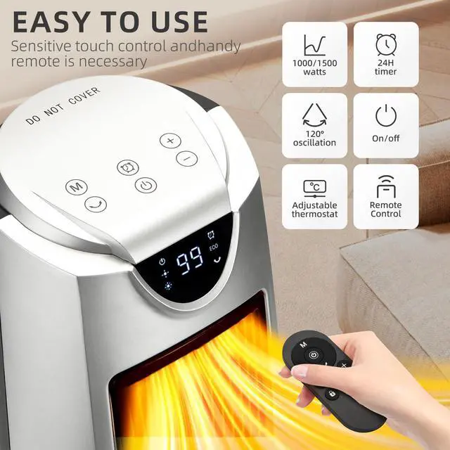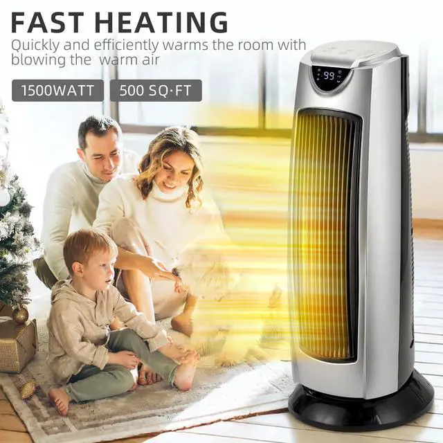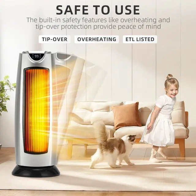 The ceramic heating element ensures efficient operation and quick heating,and the oscillating function ensures even heat distribution throughout the room.