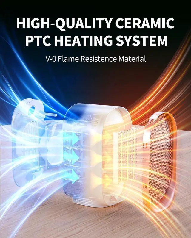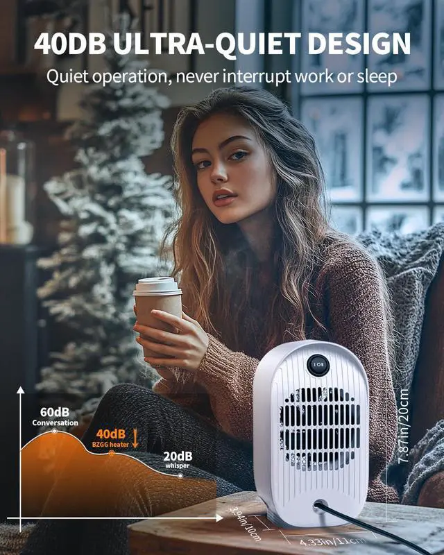 QUIET INDOOR SPACE HEATER Near-silent 40dB operation ensures zero disturbance. Fire-resistant casing provides 360° protection. Ideal space heater indoor for children's rooms, dorms, and home offices.