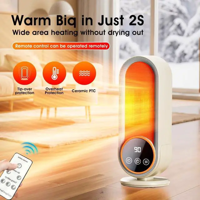 • Rapid and Efficient HeatingOur Space Heater Indoor uses 1200W PTC ceramic technology to heat up rapidly within seconds. This powerful yet small space heater ensures efficient warmth for your home or office, making it the ideal electric heater indoor solution for both small and large rooms.