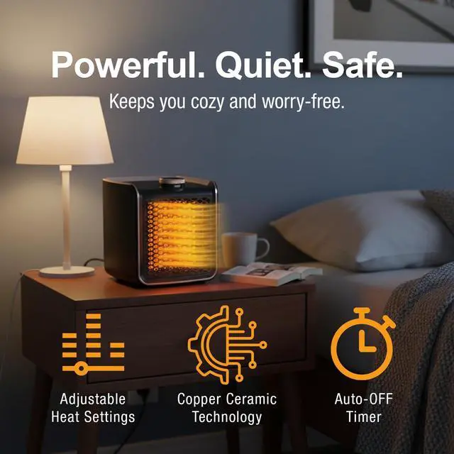 Handy Heater Instant Heat - Copper Infused Ceramic Technology Space Heater, 1200 Watts, Portable Heater for Office, Bedroom or Any Indoor Space, Adjustable Heat, Quiet & Cordless Personal Heater