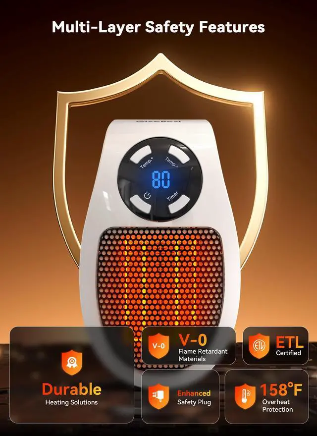 Safety Overheat Protection: Made of quality-assured flame retardant material, this electric heater achieves zero safety hazard. Overheat protection will shut heater off automatically when overheating