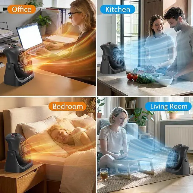 Simple Single-Knob Control: Easily manage your environment with one intuitive knob. Turn left towards the red indicator for two heating levels, or right towards the blue fan symbol for two cooling speeds. This user-friendly design makes this desk fan and heater combo accessible for everyone to enjoy instant comfort.